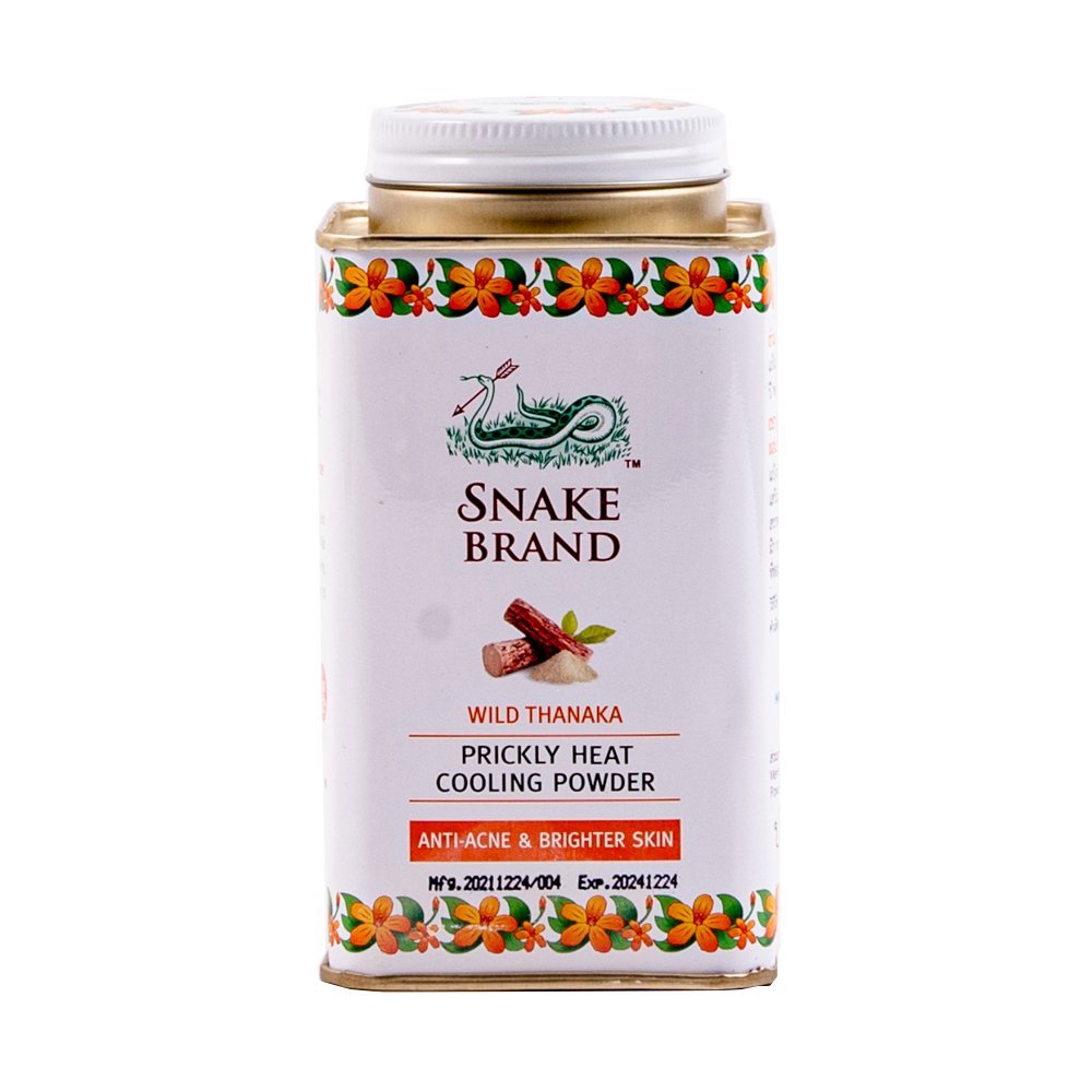 Snake Brand Prickly Heat Cooling Powder Anti-Acne and Brighter Skin: Formulated with Wild Tanaka, which is enriched with many skin benefits. This famous herb has antioxidant and anti-bacteria properties that helps resolving acne and rashes, reduces blemish & dark spots, and provides UV protection for a healthier skin. Its Citrus scent